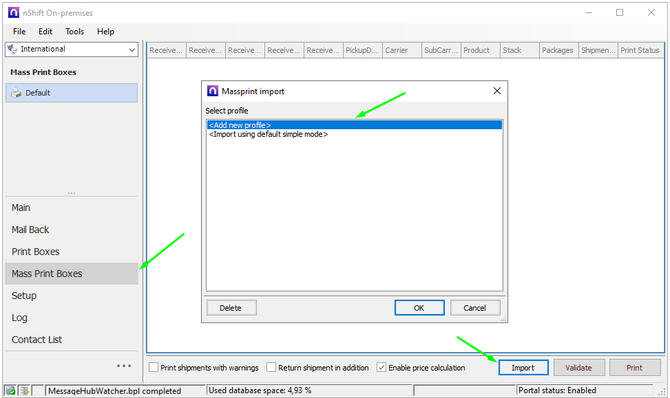 - Klik på knappen Import nederst og vælg <Add new profile>. (Bemærk: indstillingen <Import using default simple mode> er en ældre funktion og bør ikke bruges til nye opsætninger)