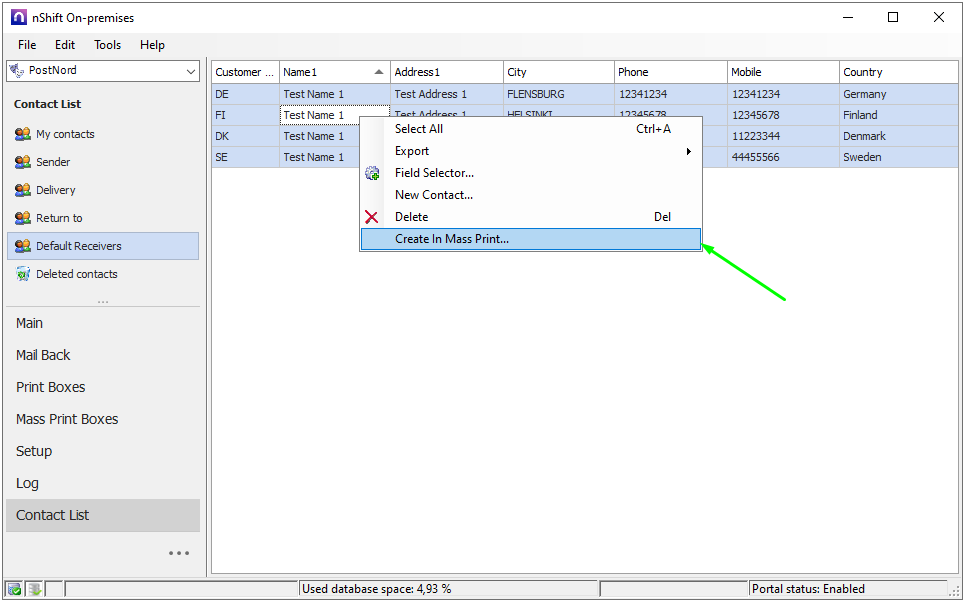 Det er muligt at bruge kontaktlisten i nShift Ship On-premises til masseudskrivning eller importere en fil med alle adresserne.