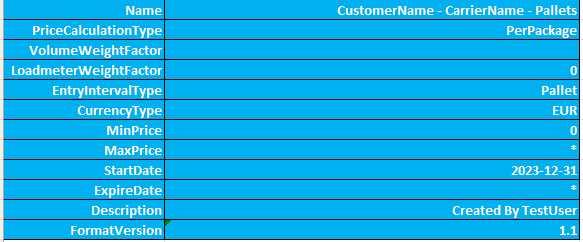 For en detaljeret forklaring af hvert felt, se CPC Excel template: PriceCalculationSet tab explained