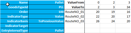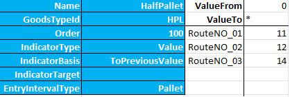 Dieselgebyret på 33% er defineret her. Bemærk, at "IndicatorBasis" er sat til ToPreviousValue, hvilket betyder, at det vil blive beregnet baseret på prisen på pallerne. Order er højere end under de foregående faner for at sikre, at diesel fee beregnes efter prisen for hver godstype.