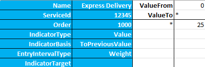 Værdierne i ValueFrom og ValueTo i efterfølgende intervaller skal altid være identiske for at undgå intervaller uden priser.