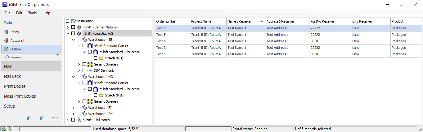 "Packages";"SE";"Test 5";"Test Name 1";"Test Address1";"22222";"Lund";"SE";"1";"Test Shipment";"10";"RouteA"