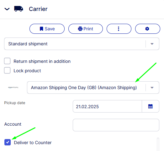 Hvis du allerede er Amazon Shipping-kunde, men ikke har adgang til de services, der kræves for at bruge Deliver to Counter, bedes du oprette en forespørgsel til nShift Customer Service, som kan hjælpe dig med at aktivere de korrekte services.