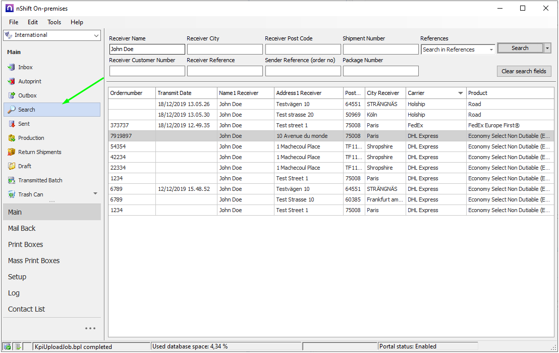 Hvis du leder efter en specifik sendt forsendelse, er en anden mulighed at bruge Search. Denne funktion kræver ingen ekstra indstillinger og begrænser automatisk datamængden ved brug af søgemulighederne.