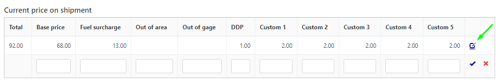 icon to save the changes and overwrite the current price on the shipment.
