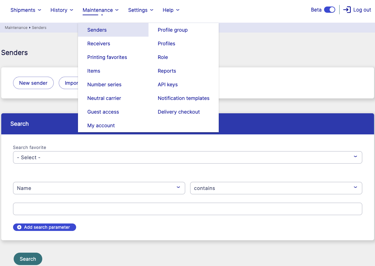- Go to Maintenance > Senders.