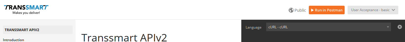 Transsmart offers a Postman package with documentation, examples, and tests to help developers understand our API and make the initial implementation easier. The prerequisite is that you download Postman via https://www.getpostman.com/apps