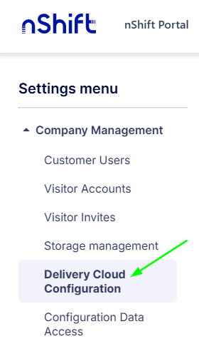 - Choose Company Management > Delivery Cloud Configuration. (If you do not see this option, you need to contact nShift Customer Service to get it activated).