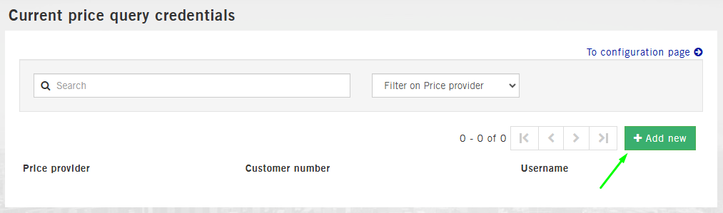 - You are now back at the Current price query credentials page (picture in step 2). Click the To configuration page link.