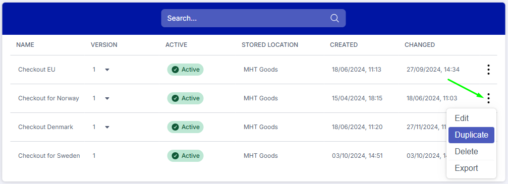 - In nShift Portal go to Checkout > Configurations and locate your default checkout.