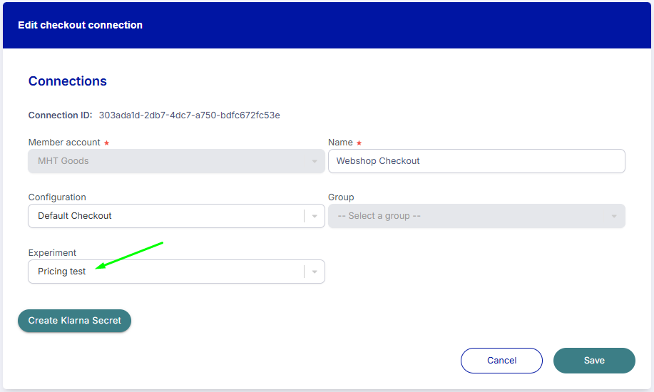 - Update your Connection to use an Experiment