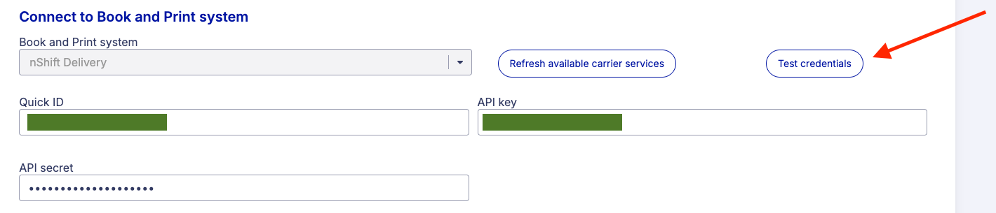 It is now possible to test the entered credentials in the Sender Page to see if they are valid.