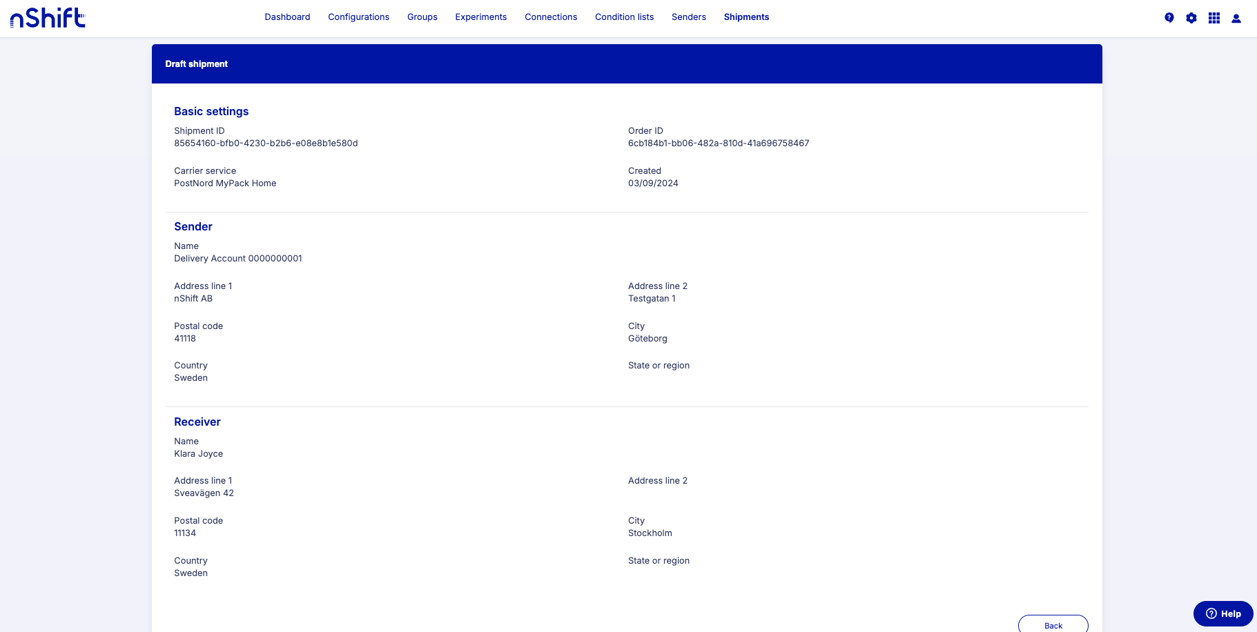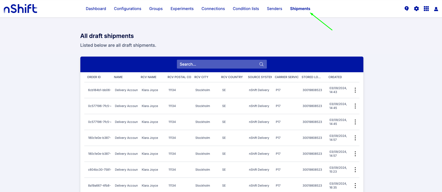 In the Checkout user interface, you can see a list of all draft shipments that were created during the checkout process, along with the details for each shipment.