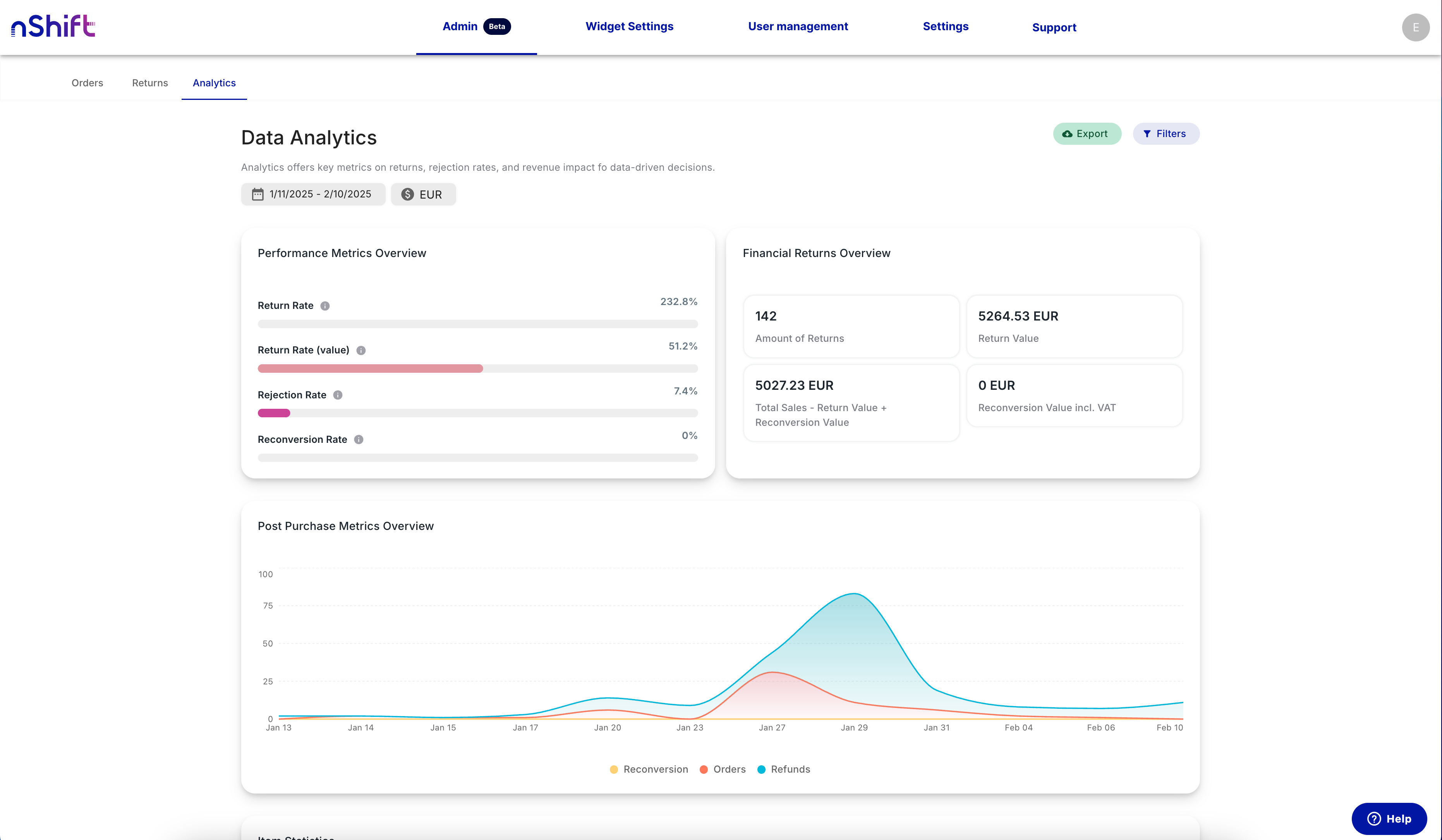 The Admin panel has a new "Analytics" tab. This feature gives users insights into their overall returns, with options to filter by date ranges, markets, and more.