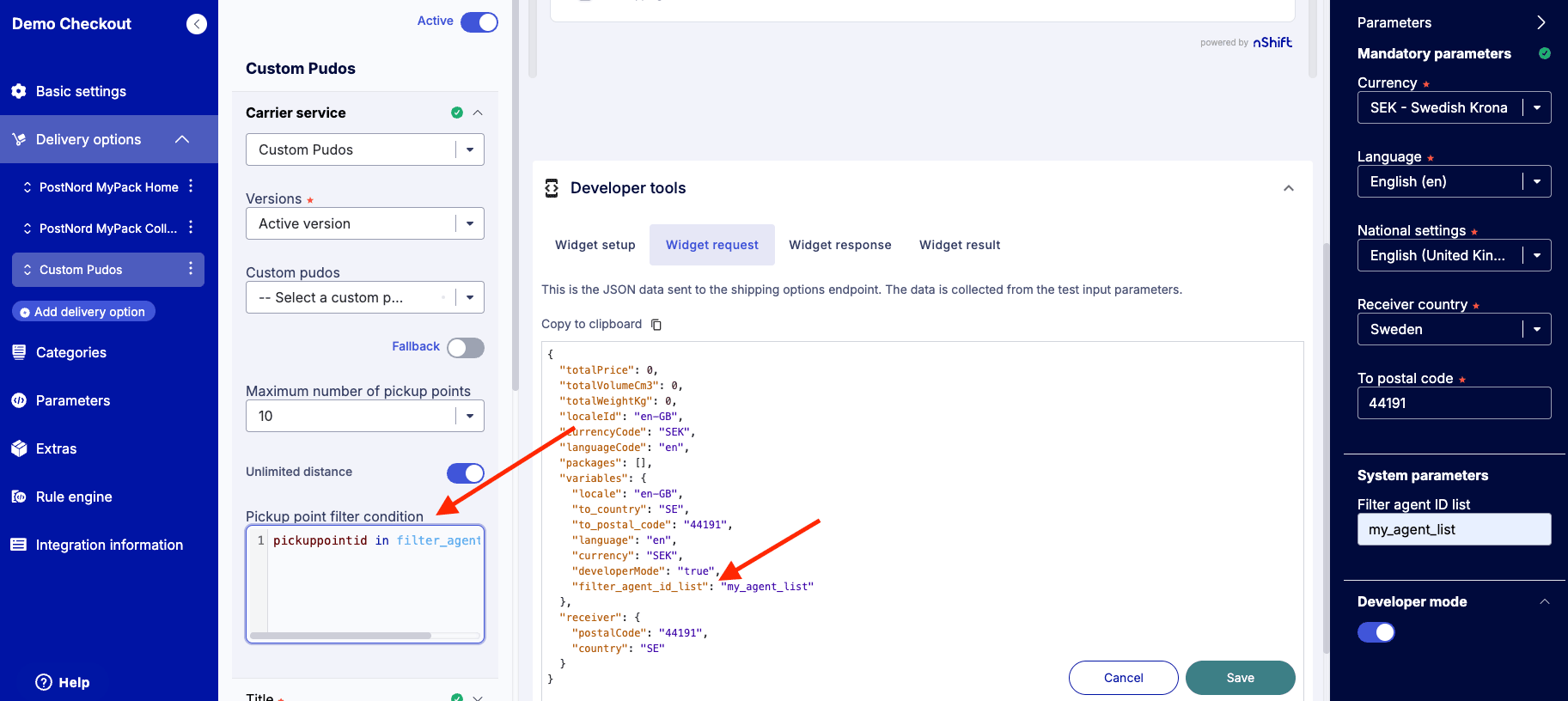 It is now possible to filter custom PUDO lists dynamically using the new system parameter filter_agent_id_list and functions.