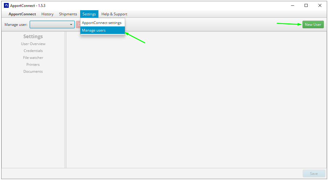 By default, no users are set up from the start. Follow these steps to set up a new user: