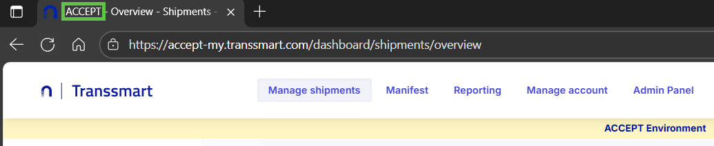 For our Accept environment, we have placed the environment name in front of the browser tab name: