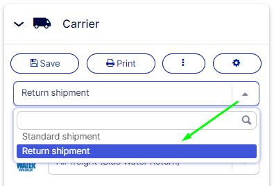 - The view will now change to Return shipment, and if the carrier has multiple return products, you may change to a different one.