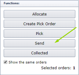 - Select one or more orders by checking the checkboxes on the right-hand side of the order list, and click the Send button when you want to create the shipments in nShift Ship.