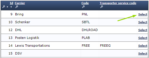 - You can edit information about the carriers by clicking the Select link next to each carrier on the list of imported carriers.