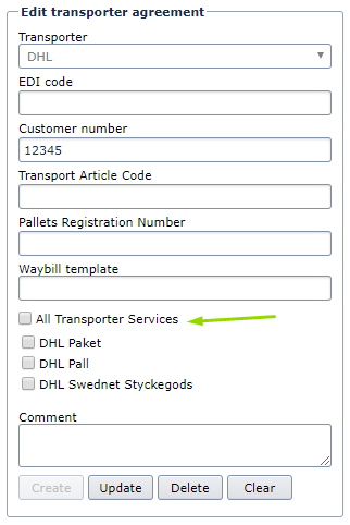 - Remove the check from All Transporter Services if you want to disable some of the available products.
