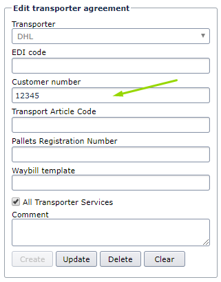 - Add the carrier account (carrier customer number) in the Customer number field.