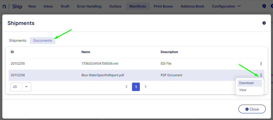- Go to Ship > Manifests.