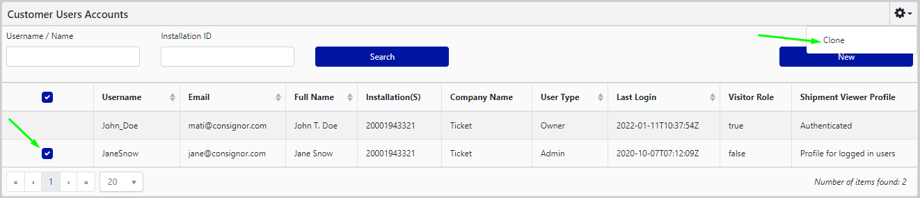 Go to Settings > Company Management > Customer Users (or Carrier Users if you are cloning a carrier user).