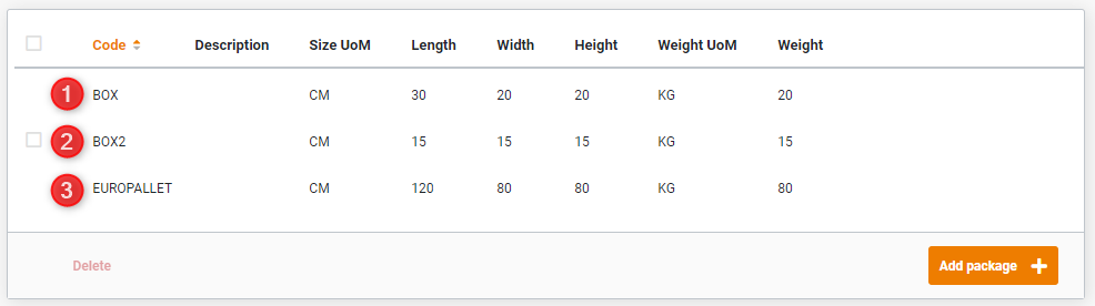 Below image shows the available packages in a child account. Package 1 and 3 are taken from the parent account and are not editable. Package 2 is added by the child account itself and can be edited.