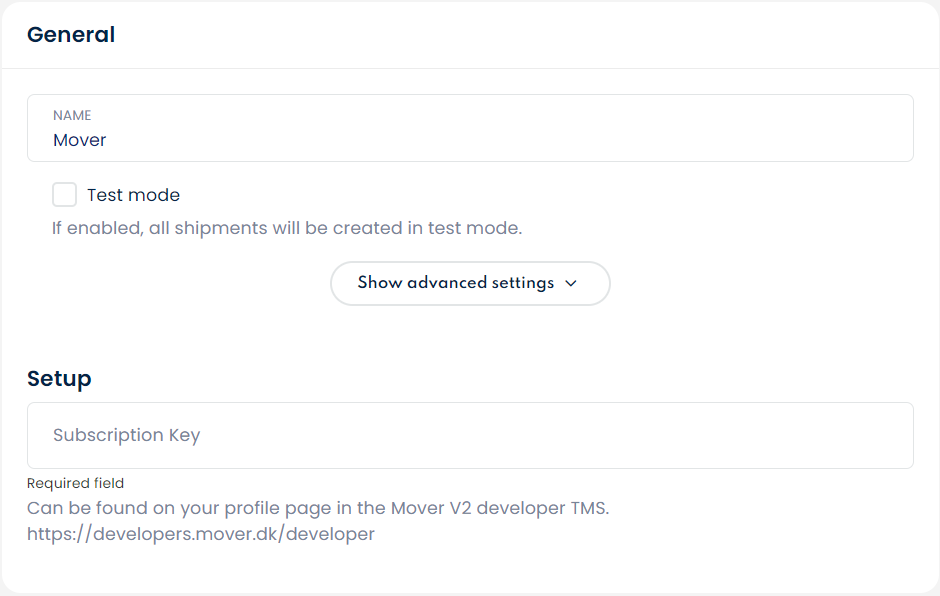 The 'Subscription Key' required can be found on your profile page in the Mover V2 developer TMS. https://developers.mover.dk/developer