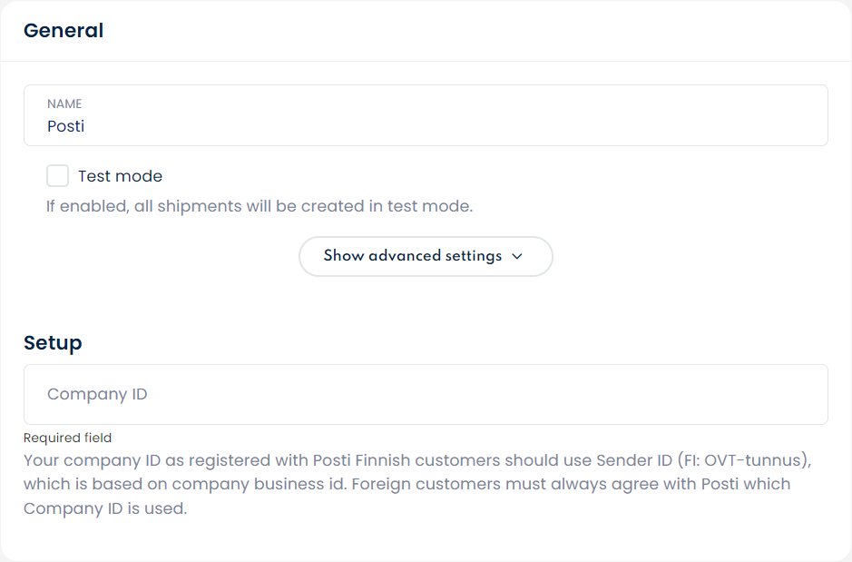 To get started with Posti, navigate to Connect > Carriers > Create Carrier > Posti.