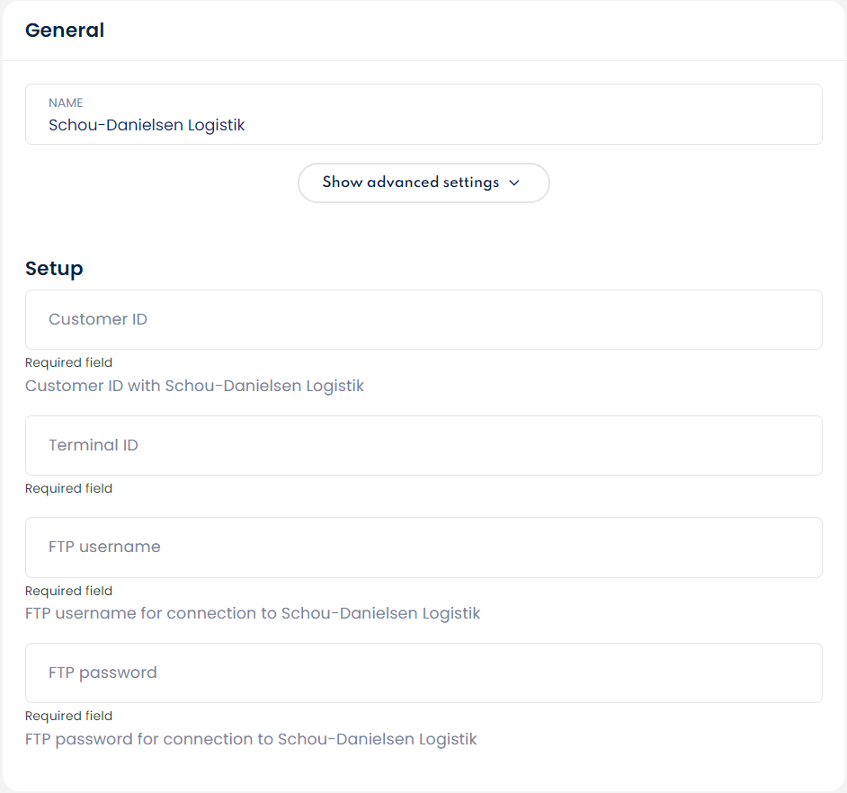To get started, navigate to Connect > Carriers > Create Carrier > Schou Danielsen Logistics.
