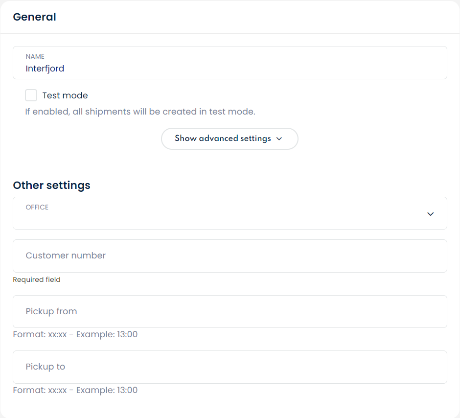 To get started, navigate to Connect > Carriers > Create Carrier > Interfjord.