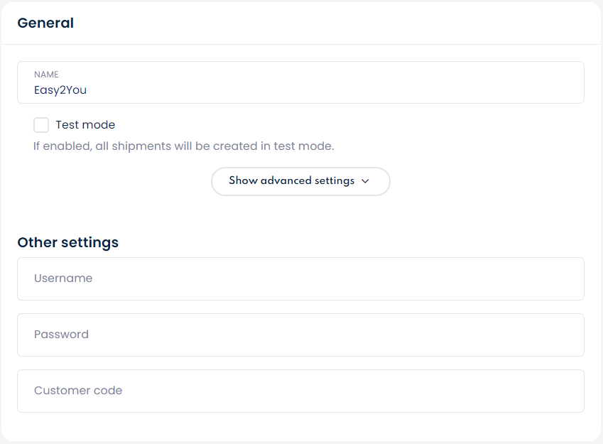 Navigate to Connect > Carriers > Create Carrier > easy2you.