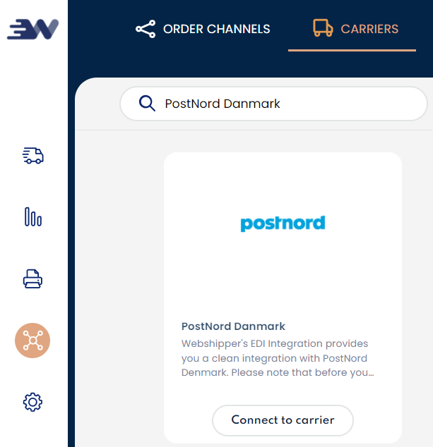 Navigate to Connect > Carriers > Create Carrier and click Create Carrier for PostNord.