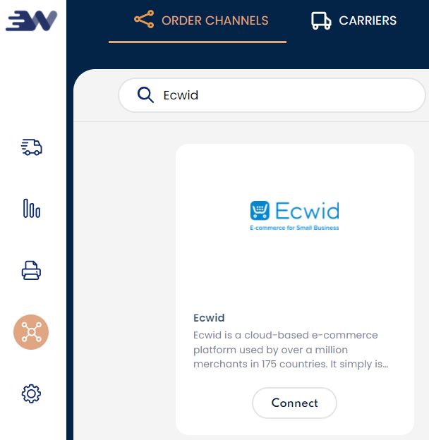 - To get started with your Ecwid, go to Connect > Order channels > click New order channel > select Ecwid > click Connect.