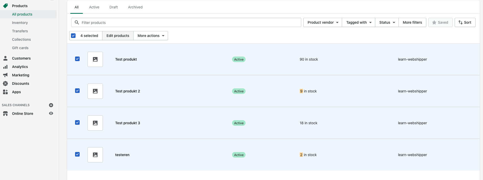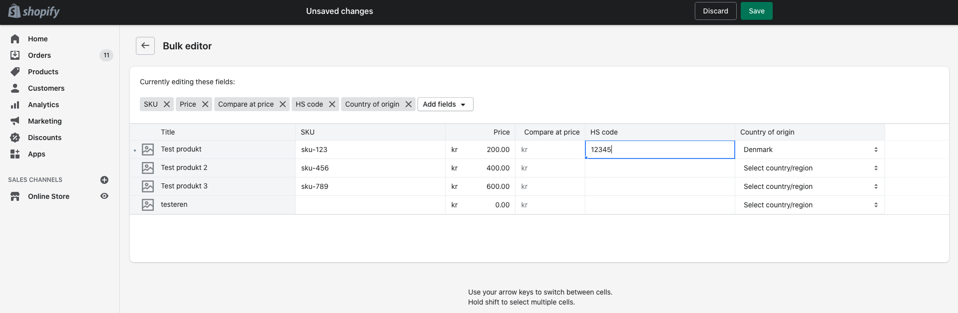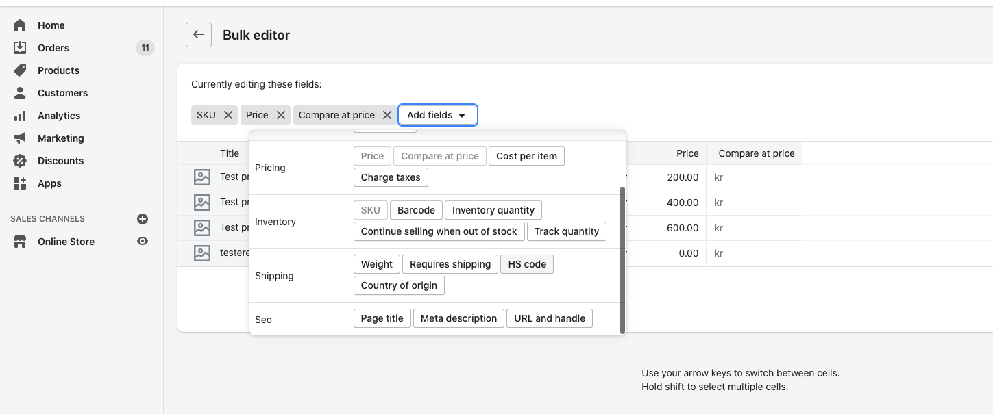 Select the products you wish to update and click "edit"