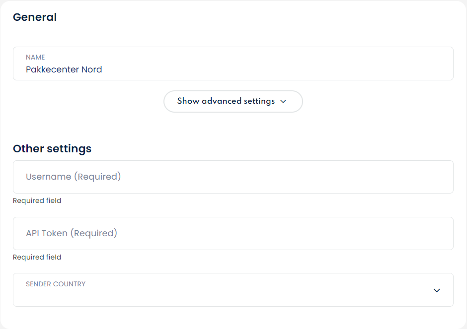 To add Pakkecenter Nord as a carrier, you will need the following: