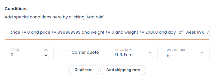 Set shipping rates to specific days during the week or to a specific time of day