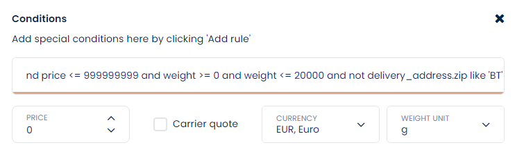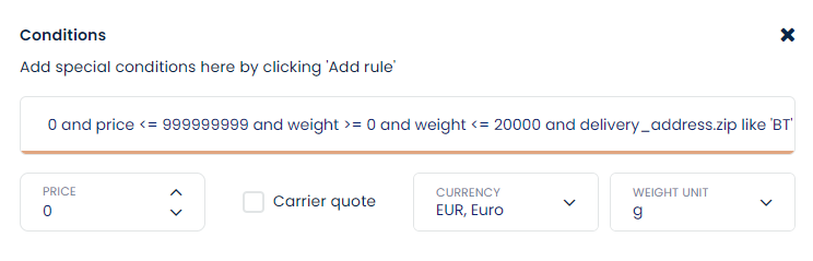 WEL Condition should look like this for shipping method 1