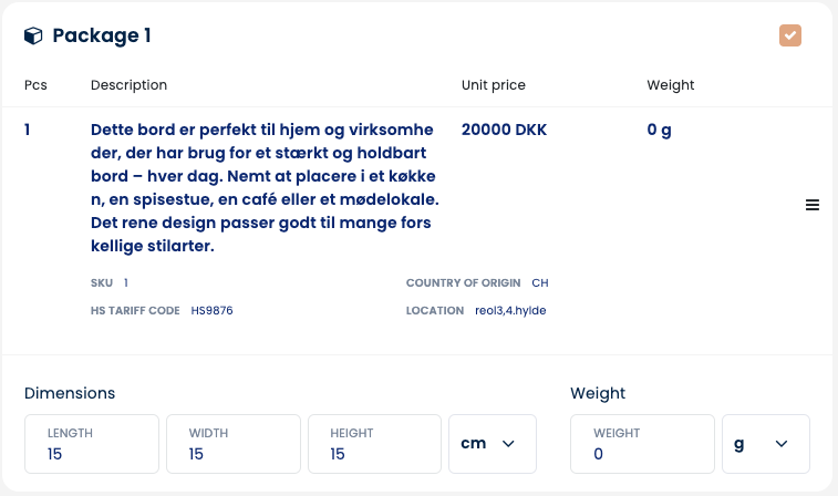 The final result imported to Webshipper