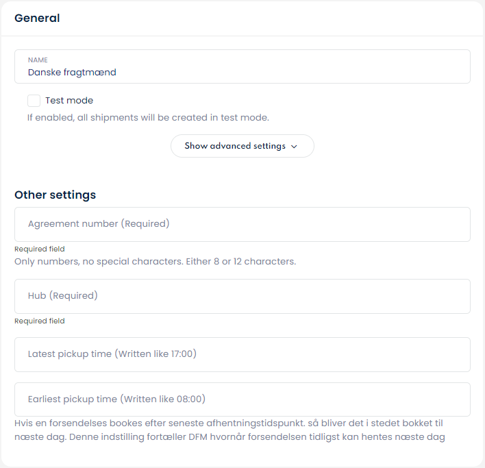 Congratulations! You have now added Danske Fragtmænd as a carrier, and you should be able to use their services in the future!