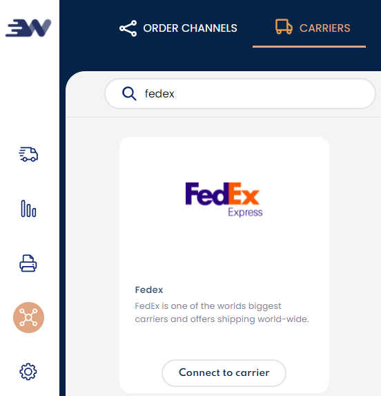 To set up FedEx in Webshipper, navigate to Connect Carriers Find FedEx in the list and click Create carrier.