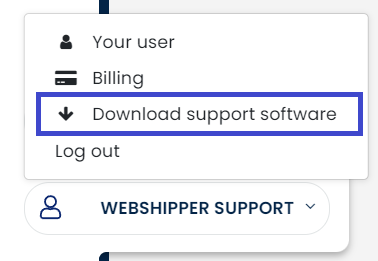 In this box, select Download support software and the file should automatically start to download on your device. Once it has been downloaded, install it and provide the Webshipper support agent with the ID code displayed on your screen.
