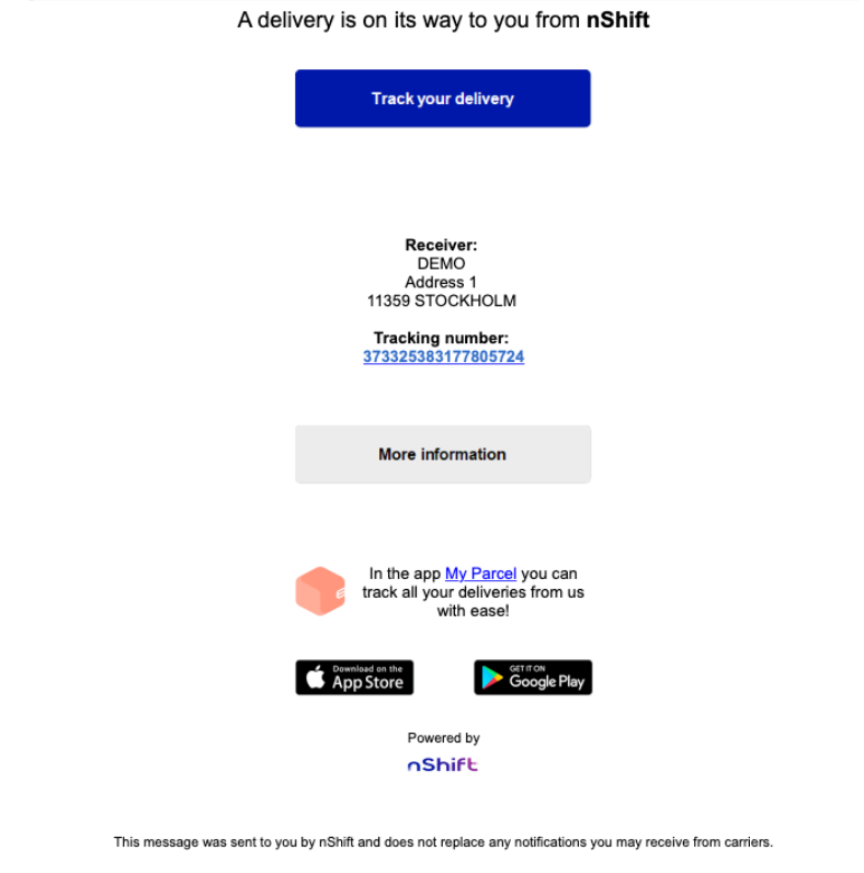 - With email pre-notification you can send advance information to your customer about a shipment. In addition to shipment information, the notification contains a traceable package ID and often contact information for the carrier.