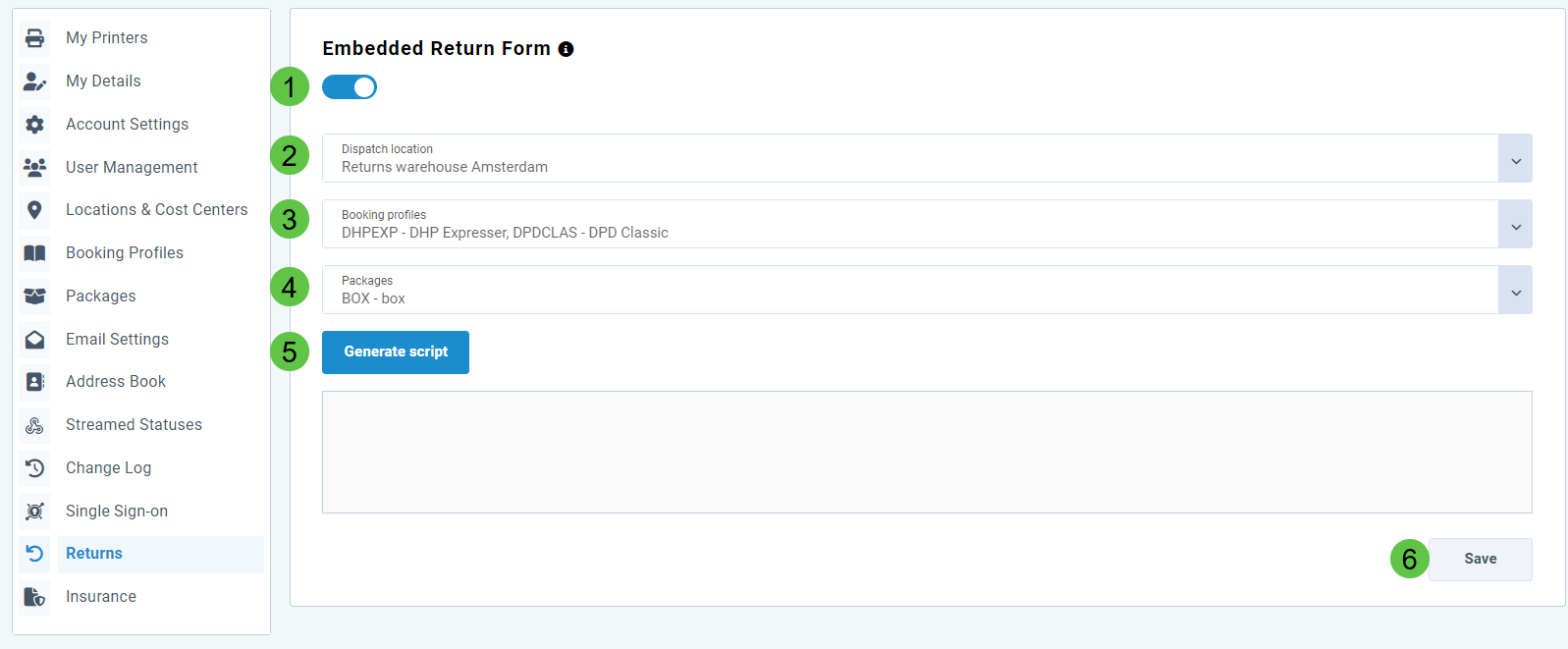 Ga naar de configuratiepagina die u vindt in het menu Manage account >Returns: