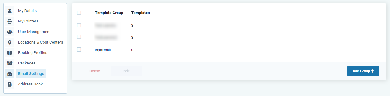 Heb je al e-mail-templates in je account? Dan kun je in het overzicht zien welke sjabloongroepen je hebt en hoeveel templates daaraan gekoppeld zijn.