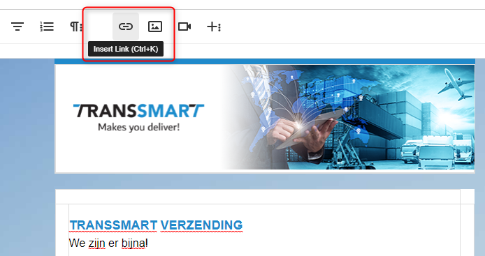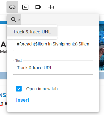 In de editor is het eenvoudig gemaakt om de track-and-trace URL achter een afbeelding of bepaalde tekst te plaatsen.