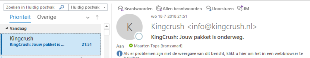 Let op: deze e-mails worden door Transsmart namens u verzonden. Om de e-mails te kunnen verzenden moet Transsmart worden opgenomen in de SPF-records met include: spf.transsmart.com. Als u dit niet doet, komen de e-mails niet aan of belanden ze automatisch in de spammap.