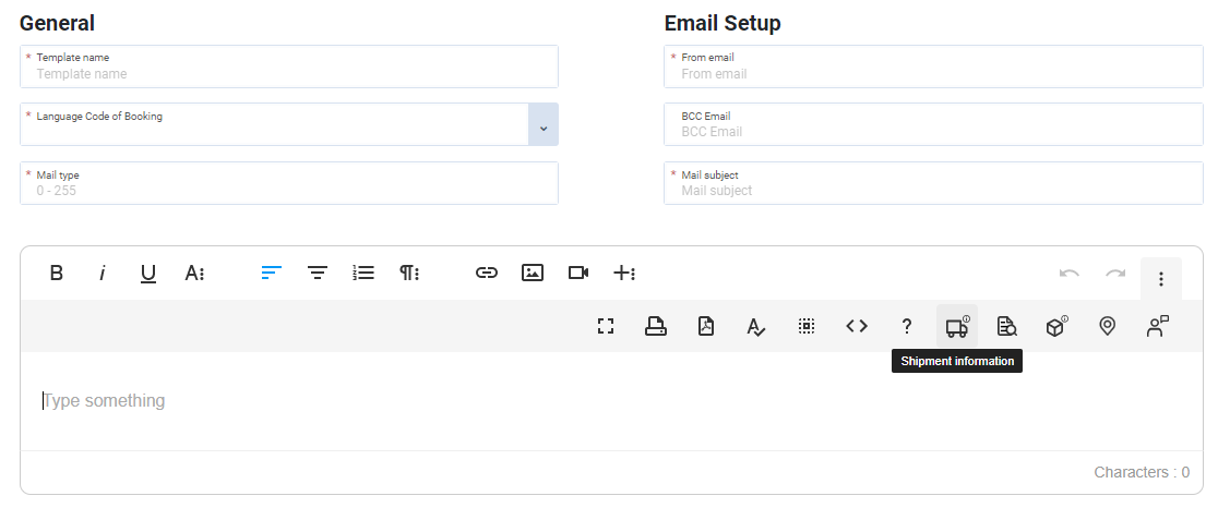 De opties in deze dropdown zijn afhankelijk van uw configuratie van de instelling voor uw e-mailsjabloon in Account Settings (https://my.transsmart.com/dashboard/account/settings). Raadpleeg deze instelling en de extra informatie onder de i-knop om precies te begrijpen hoe deze instelling werkt. Het is zeer belangrijk om de juiste instelling te kiezen op basis van hoe u uw zendingen boekt. Als u daar de instelling op taalcode configureert, dan bevat de dropdown in de mailsjabloon alleen taalcodes en vice versa.